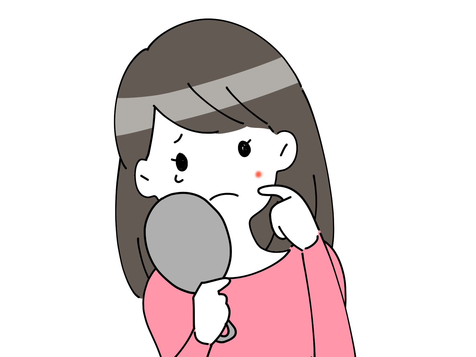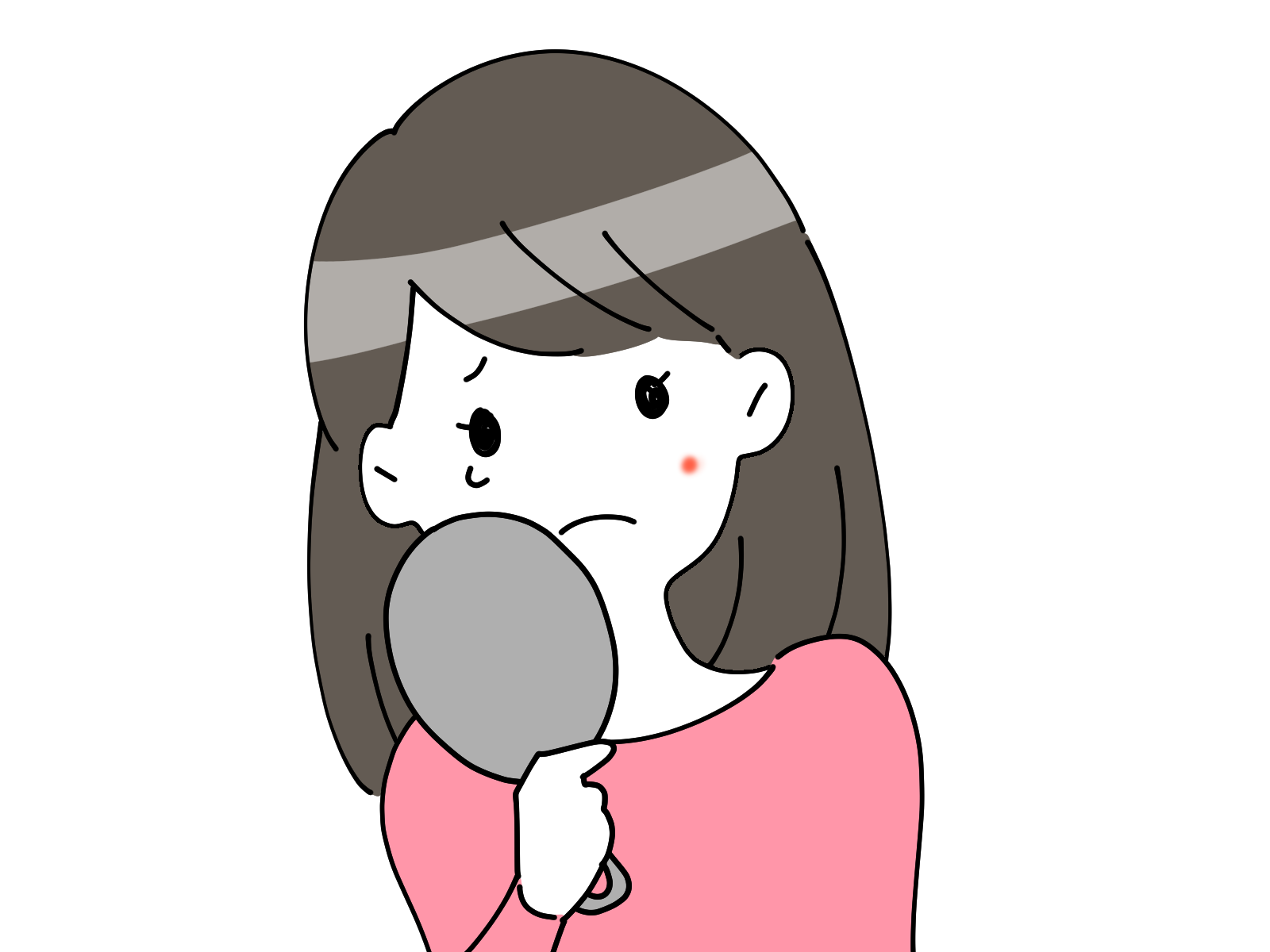ニキビを見て泣く女の子(手なし)のイラスト