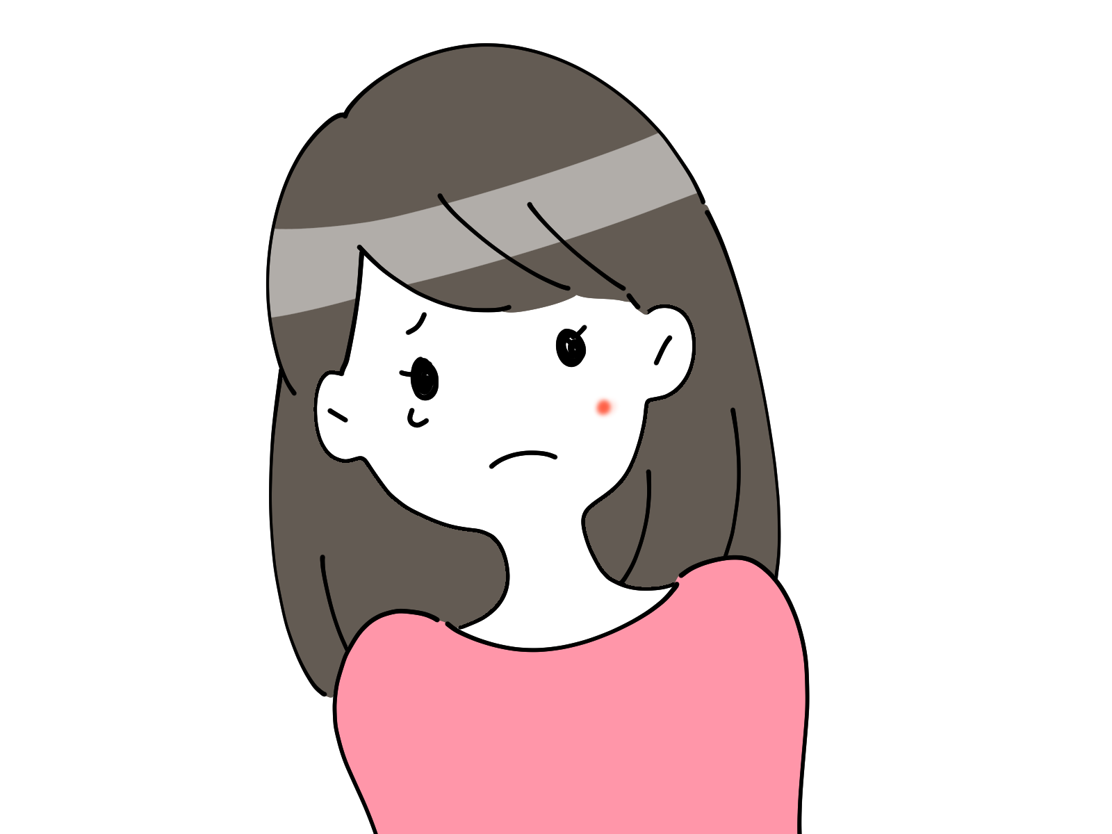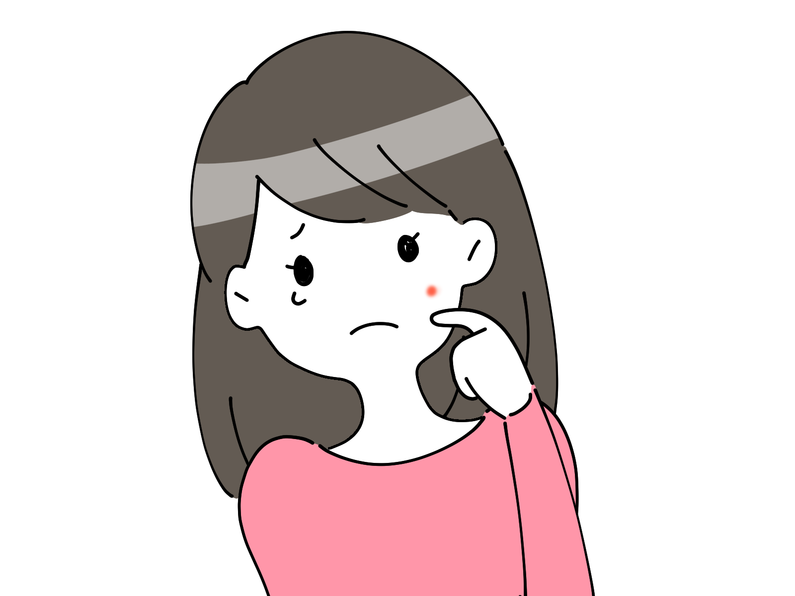 ニキビができて泣く女の子(手なし)のイラスト